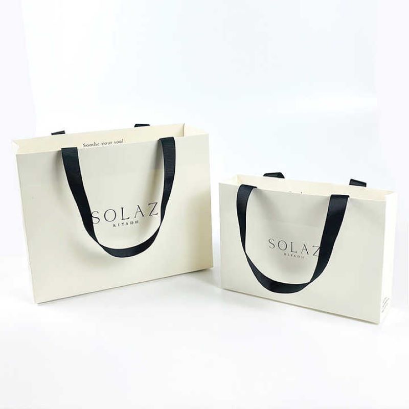 Deze stijlvolle papieren zak van kraftpapier combineert eenvoud en elegantie, waardoor hij ideaal is voor boetieks, geschenkverpakkingen en high-end-einde detailhandel. Gemaakt van ecologisch-Het vriendelijke kraftpapier heeft een strakke witte afwerking met contrasterende zwarte handvatten en een lint dat in een strik is vastgebonden. Het ontwerp is minimalistisch en toch verfijnd, geschikt voor het overbrengen van een premium merkimago. Kraftpapier, bekend om zijn sterkte en recycleerbaarheid, is een duurzame keuze, waardoor deze tasniet alleen aantrekkelijk maar ook milieuverantwoord is.